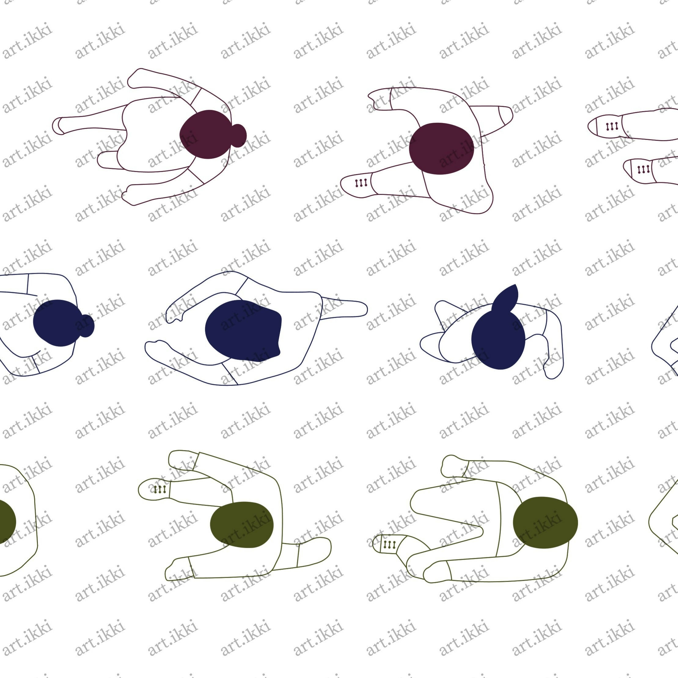 12 Human Figure Set in Top View