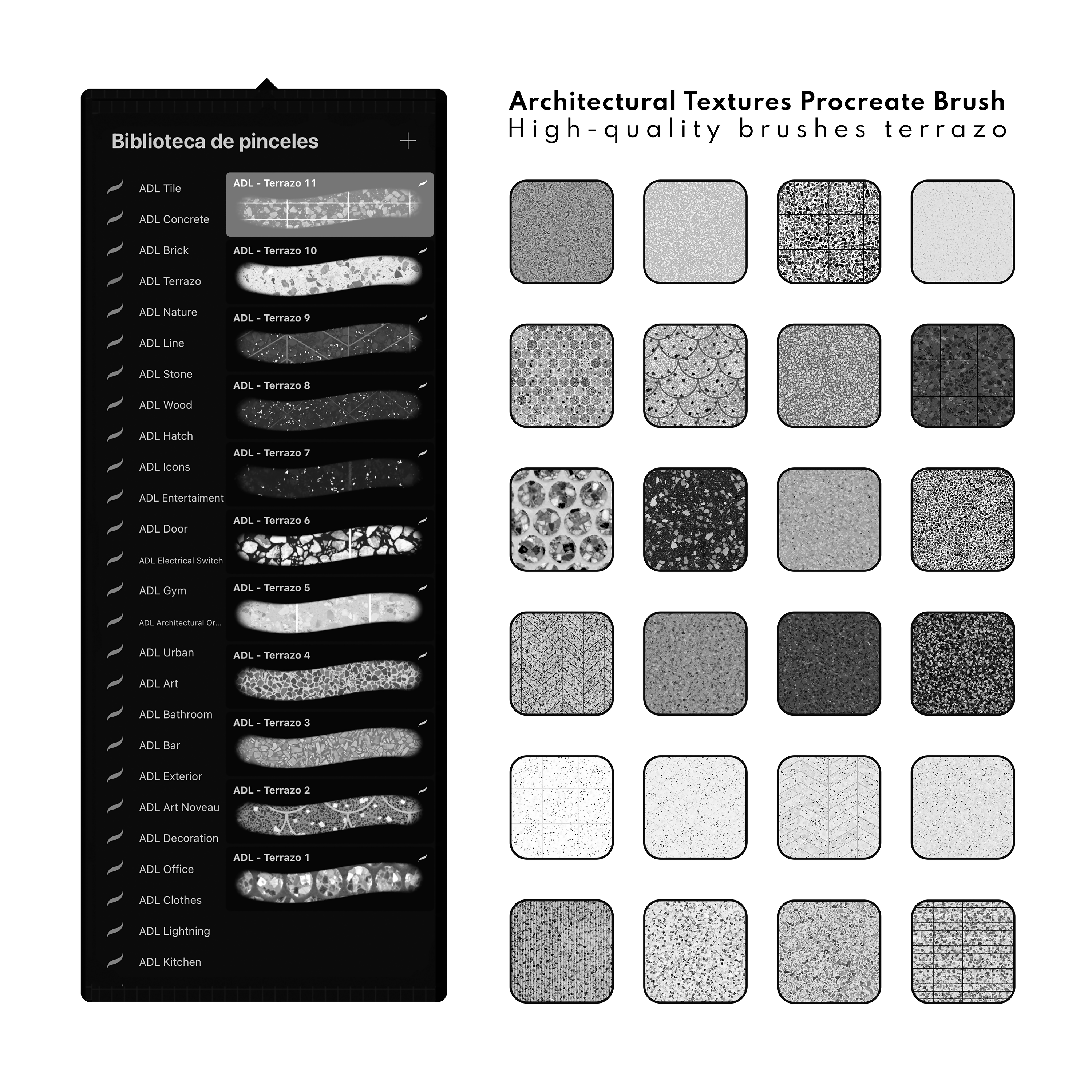 Architecture Texture Concrete and Terrazo Procreate Brushes