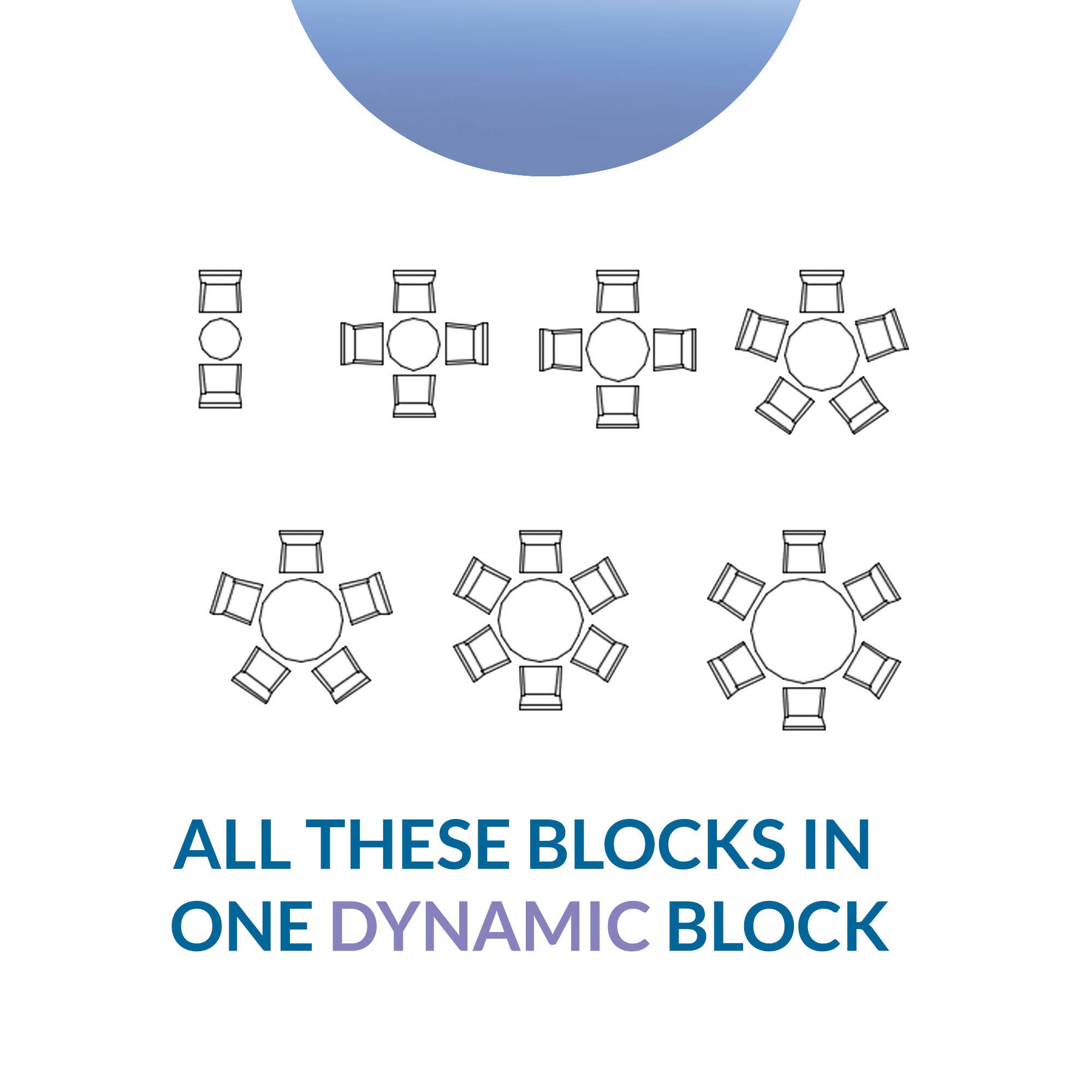 Autocad Dynamic Block | Round Tables with Seating Options | For Interior Designers